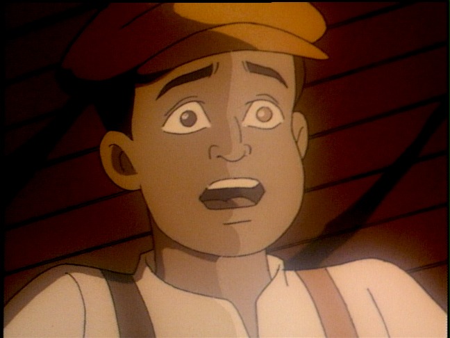 Visually, there's not a lot that makes this episode stand out. The best scene is definitely the one where The Joker asks Maura, the boardwalk fortune teller machine, to tell him how he should deal with The Batman. Not only is this a fine example of the Clown Prince of Crime's insanity, but it's also a nice, moody encounter with the carnival trappings of a bygone age; again pointing out BTAS Gotham's "between times" setting. There's also a great moment when Bruce Wayne reacts the same way I do to hearing Mark Hamill's maniacal cackle: "That laugh..." On the down side of the visuals, after 2/3 of the episode pretending to be "Jekko", we're supposed to believe that Jordan is surprised to know he's spending time with The Joker, when the only thing that changes is the latter's hair. He's kept the orange fringe cap on even while he's changed into his normal purple suit! But perhaps that was part of the point. There's no truly insane scheme here. It's just a simple escapade. Joker is a vaguely murderous goof here, instead of the wicked threat we saw in Joker's Favor. However, the chase scene on the roller coaster is well done and they didn't dwell on the metaphor of the coaster destroying the funhouse any longer than necessary, so there was some thought put into the pacing and direction, at least. And there was one good line: "They don't make straitjackets like they used to... and I should know." We'll just stroll right by the schmaltzy ending.